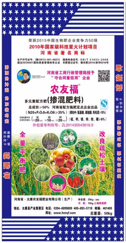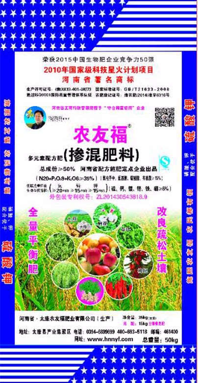 太康縣農(nóng)友福肥業(yè)有限公司背靠九朝古都開(kāi)封,南臨羲皇故都淮陽(yáng),坐落在歷史名人吳廣故里、銀城太康。廠(chǎng)區(qū)位于太康縣產(chǎn)業(yè)集聚區(qū),占地面積100畝,風(fēng)景優(yōu)美,交通便利。公司擁有30萬(wàn)農(nóng)友福復(fù)混肥的年生產(chǎn)能力。擁有七項(xiàng)發(fā)明專(zhuān)利,6項(xiàng)注冊(cè)商標(biāo),集研究開(kāi)發(fā)為一體,是擁有自主知識(shí)產(chǎn)權(quán)、自主創(chuàng)新的科技企業(yè)。 企業(yè)設(shè)有供應(yīng)部、銷(xiāo)售部、財(cái)務(wù)部、質(zhì)檢部、科研開(kāi)發(fā)部、生產(chǎn)部、市場(chǎng)服務(wù)部、文藝宣傳部,八個(gè)機(jī)構(gòu),管理人員80多人,公司各崗位員工600多人。擁有得天獨(dú)厚的科技優(yōu)勢(shì)團(tuán)隊(duì)有著新產(chǎn)品研發(fā)與市場(chǎng)服務(wù)的雄厚實(shí)力。本廠(chǎng)擁有運(yùn)輸車(chē)輛50余部,再加上方圓物流、萬(wàn)里物流、中博物流、長(zhǎng)通貨運(yùn)、光明貨運(yùn)的密切配合,省內(nèi)兩天到貨...